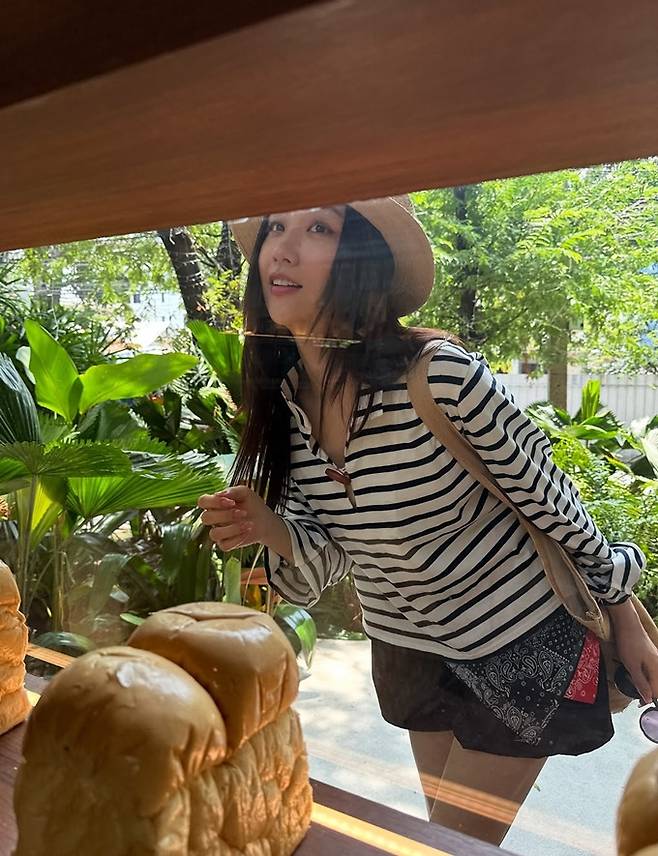 공개한 사진에서 박하선은 페도라햇에 늘씬한 각선미가 드러난 블랙 쇼츠와 스트라이프 티셔츠 차림으로 멋스러우면서도 스타일리시한 여행룩을 완성했다.