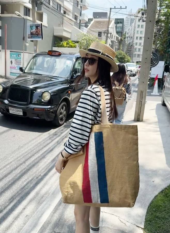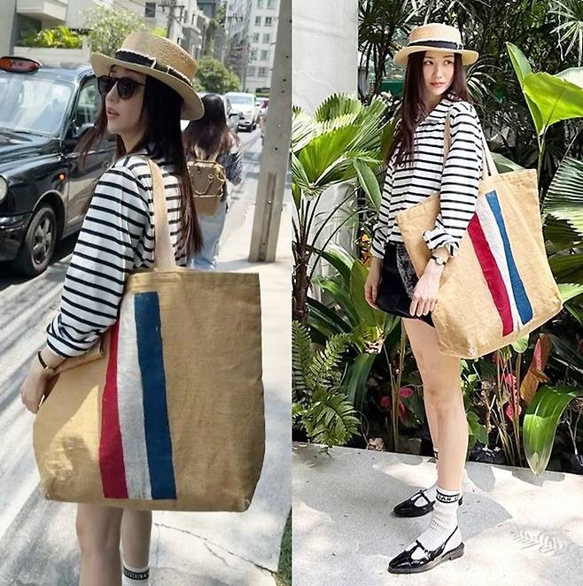 또 여기에 커다란 에코백과 선글라스를 매치해 감각적인 여행 스타일을 선보였다.
