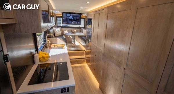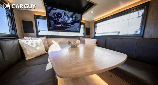 투박한 외관이지만 캠핑카 실내는 아늑하고 고급스럽다. 욕실, 부엌 등 가정에 갖춰져 있는 편의시설을 모두 장착했다. 최대 6인이 탑승할 수 있다.