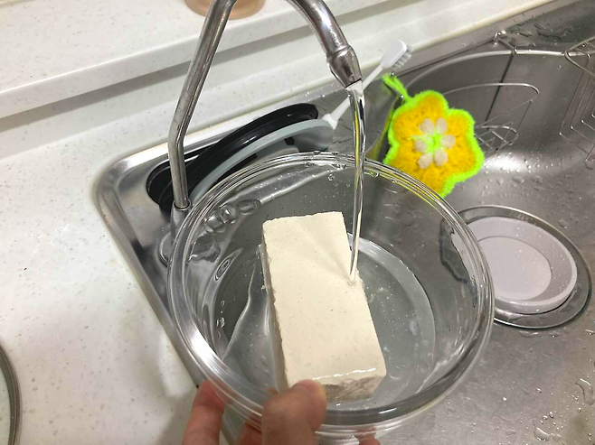 오늘부터는 이렇게 보관해 보세요. 먼저 두부를 물에 헹궈주시고요.