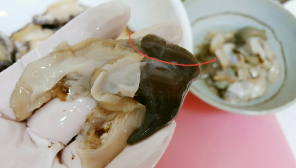 이 부분은 전복이 먹은 바다 속 모래나 불순물, 때론 유해성분까지 축적된 곳이므로 절대 먹지 않아야 합니다.