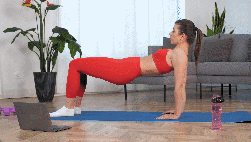 매트에 엉덩이를 대고 앉아 다리를 펴줍니다. 엉덩이를 공중으로 띄워 테이블 모양을 만듭니다. 오른쪽 다리를 들어 복부에 힘이 들어가도록 합니다. 왼쪽 다리로 동작을 반복하며 번갈아 가며 다리를 들어줍니다.