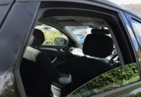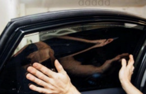 한 명은 운전석에서 고장 난 창문의 '올림' 버튼을 계속 누르고 있습니다.