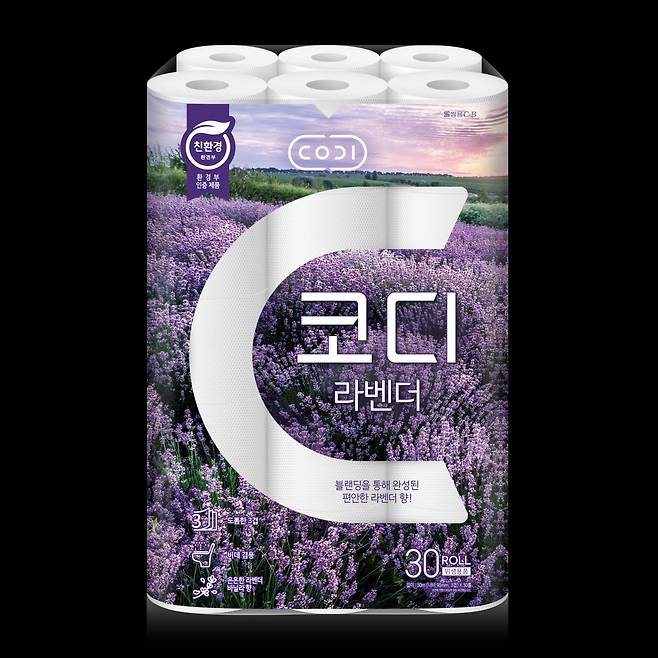 쌍용C&B가 내놓은 ‘코디 라벤더 스페셜’은 도톰한 3겹으로 흡수력을 높인 화장지다. 세련된 데코엠보싱 문양을 넣어 부드러우면서도 힘 있게 닦인다. 심 안에서 은은한 라벤더 향과 바닐라 향이 나 욕실을 쾌적하게 만들 수 있다.