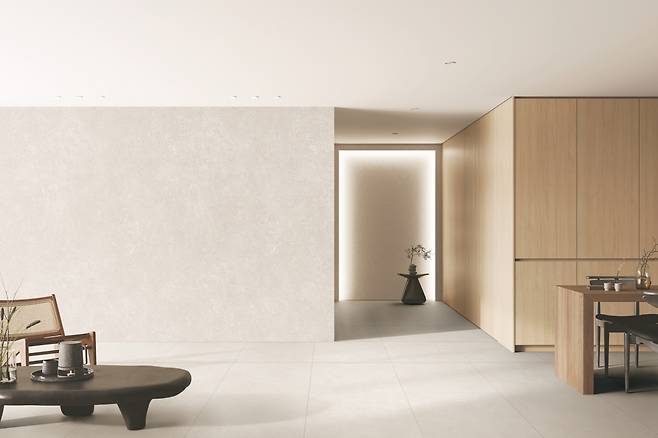 LX하우시스는 최근 프리미엄 벽지 ‘LX Z:IN(지인) 벽지 디아망’의 2025년형 리뉴얼 신제품을 출시했다. 2년 만에 리뉴얼한 디아망 벽지에는 회벽, 스톤, 직물, 페인팅 등 소비자 선호도가 높은 표면 질감 디자인이 대거 추가됐다. 또 세로 폭이 일반 벽지(600mm 수준)보다 대폭 넓어진 1800mm 수준의 대형 사이즈 제품 라인도 새롭게 선보였다.