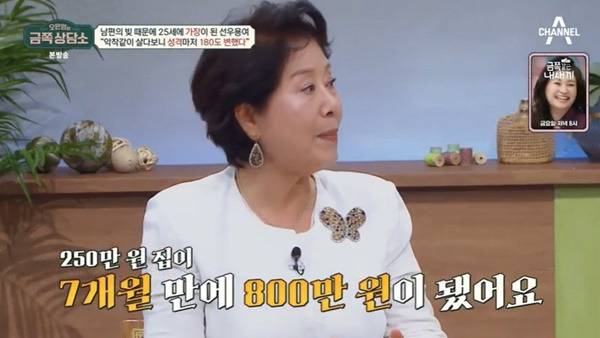 남편은 지인의 빚 보증을 서줬다가 그 일로 체포되었고 당시로서는 상상할 수 없는 금액이었던 1750만 원을 고스란히 선우용여가 짊어져야 했다.