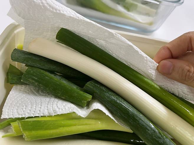 만일 세척하여 파를 보관하고자 한다면, 세척 후 충분히 물기를 말리세요. 혹은 키친 타월로 꼼꼼하게 물기를 제거하세요.