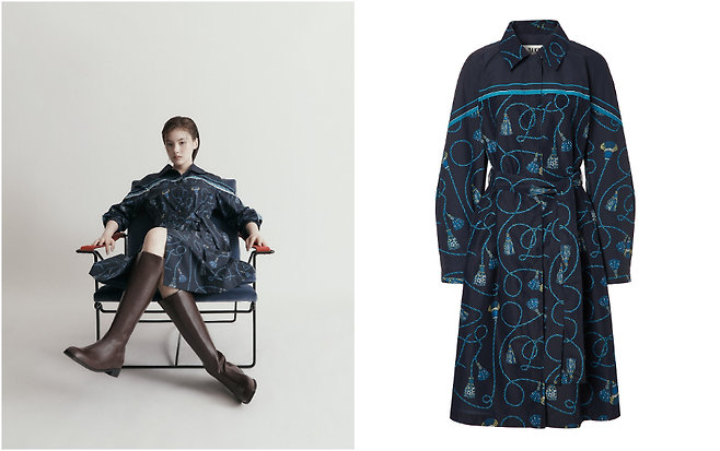 감각적인 그래픽의 트렌치코트형 원피스,