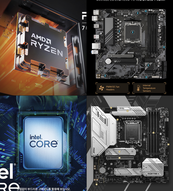 메인보드 : GIGABYTE B650M K 피씨디렉트 (인텔은 MSI MAG B760M 박격포 II)