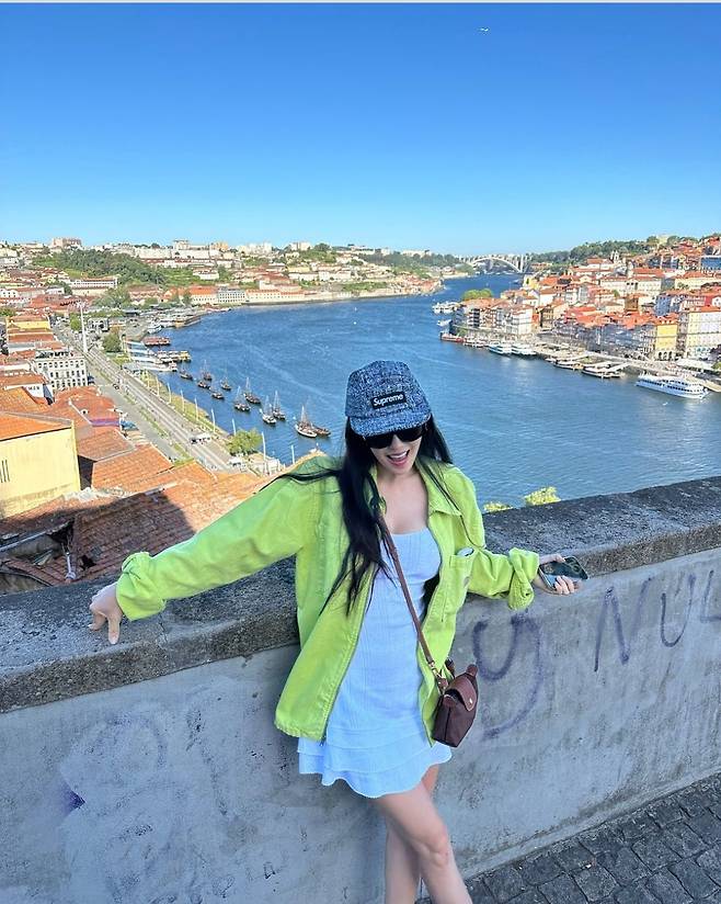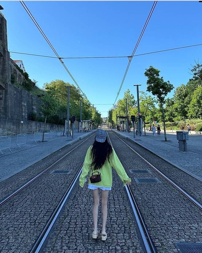 효민은 밝은 네온 그린 색상의 재킷을 착용해 캐주얼하면서도 스타일리시한 느낌을 주었습니다.