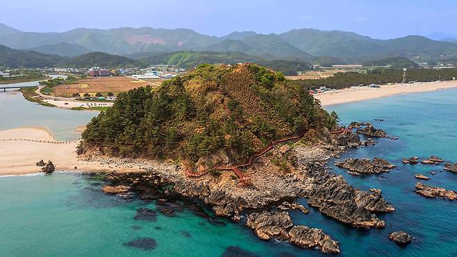삼척 맹방해수욕장의 푸른 물결에 발을 담그고 나면, 바로 옆에 이어지는 또 하나의 여정이 기다린다. 본래 바다 위에 떠 있던 섬이 육지와 연결된 독특한 지형, 덕봉산 해안생태탐방로가 바로 그곳이다.