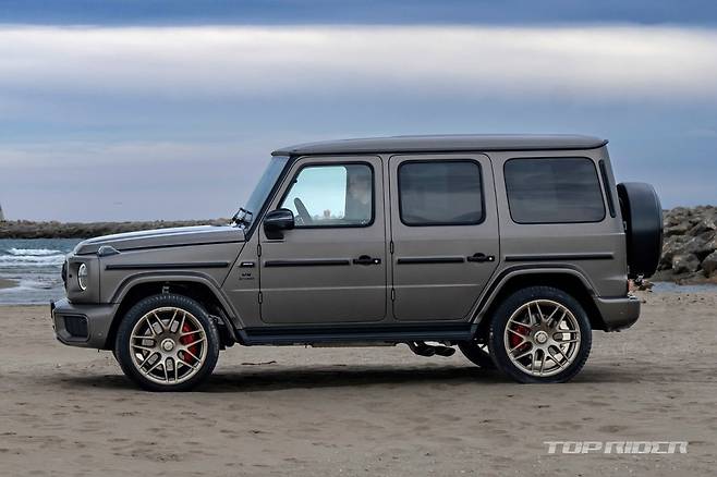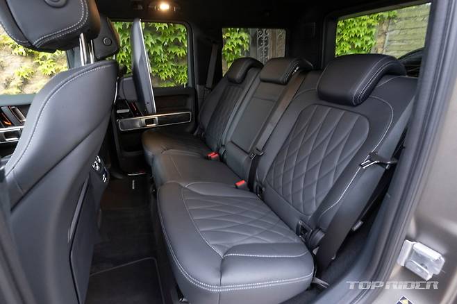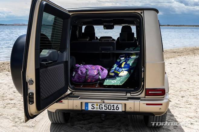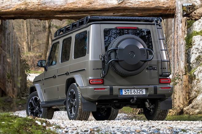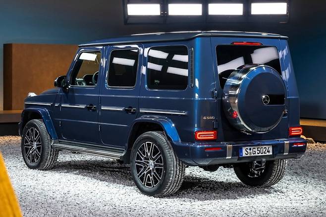 신형 G클래스 외관은 특유의 박스형 실루엣과 아날로그 감성 디테일이 유지됐다. 묵직한 도어핸들과 특유의 둔탁한 문닫는 소리, 후방에 노출된 스페어 타이어, 솟아오른 방향지시등이 특징이다. 여기에 신규 전면부 그릴과 범퍼, 와이퍼액 노즐이 포함된 후방카메라가 추가됐다.