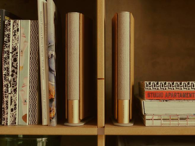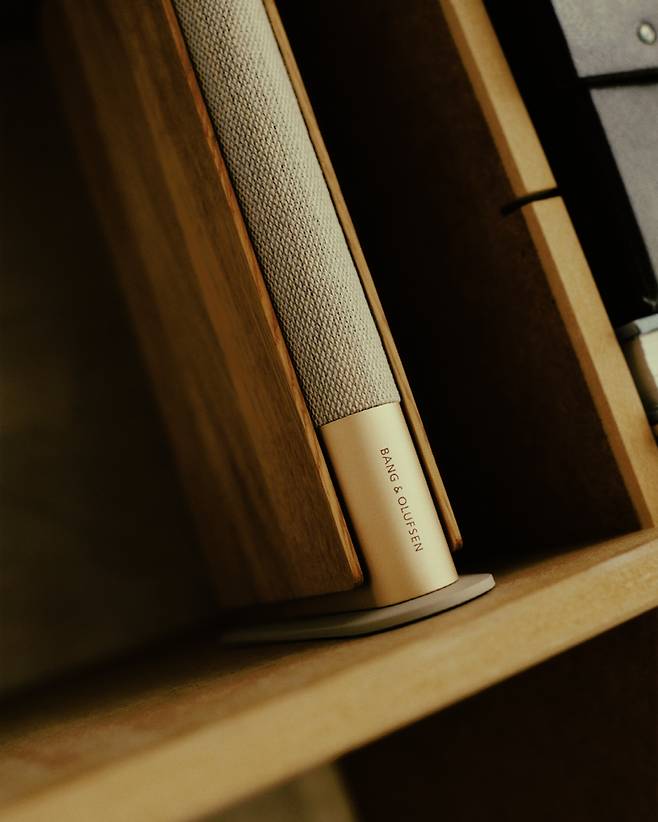 측면 패널이 마치 책의 커버처럼 스피커를 감싸고, 스피커 전면에는 책에 작가 이름을 담는 방식과 동일하게 뱅앤올룹슨의 로고를 새겨 완성했다.