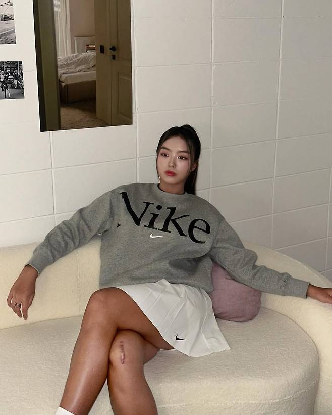 매치한 테니스 룩을 연출했네요.