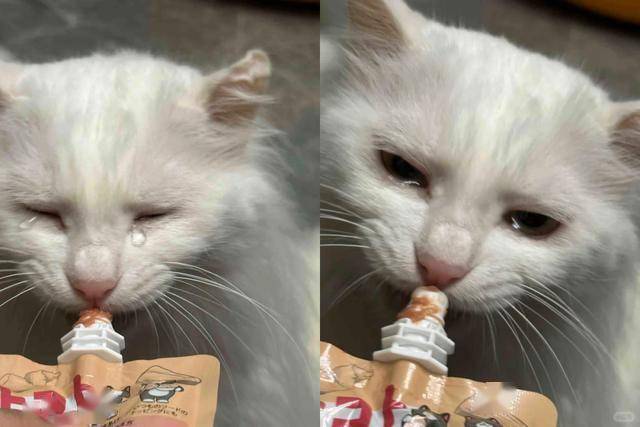 하지만 수의사에 따르면, 고양이가 실제로 슬퍼서 우는 게 아니라, 고양이의 눈물샘과 침샘이 연결되어 있어서 간식을 먹을 때 침이 많아지면 눈물도 함께 흘러나오는 현상이라고 합니다.