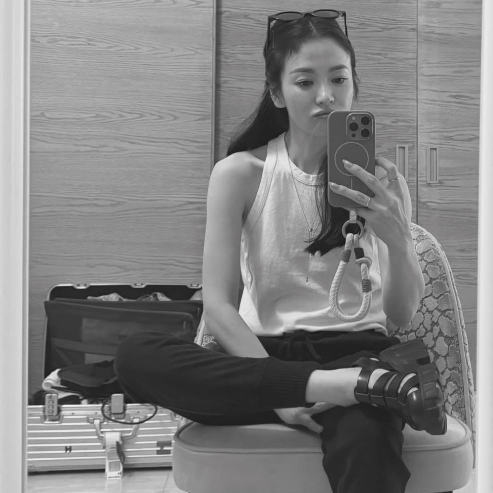 특별한 문구없이 붙임머리를 하고 셀카사진을 올린 배우 송혜교 흑백 셀카 사진 보셨나요?..👀