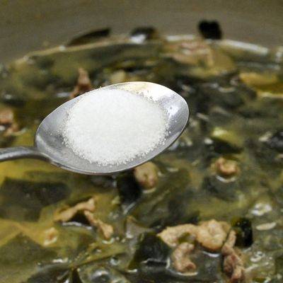 미역을 불릴 때 물 1컵(200~250ml)에 설탕 한 스푼(약 5g)을 넣고 저어준다. 그 후 평소처럼 20~30분 정도 불리면 설탕 덕분에 부드러운 식감이 배가 된다. 시간이 더 있다면 냉장고에 넣어 1시간 정도 천천히 불리면 최상의 상태로 미역이 풀어진다.