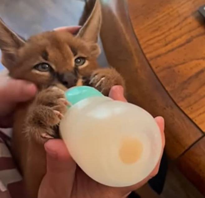구조할 당시 너무 어린 새끼였다보니 부부가 고양이랑 헷갈려 했던 것인데요. 카라칼은 주로 쥐, 영양, 새, 파충류, 물고기 등을 먹는다고 합니다.