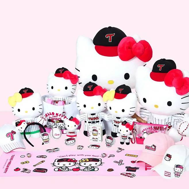 협업 장인 헬로키티, 이번엔 LG트윈스랑 붙었다. 트윈스라는 이름에 걸맞게 헬로키티와 동생 헬로미미가 나란히 등장했다. 쌍둥이 콘셉트로 유니폼, 모자, 봉제 인형까지 무려 70여 종의 굿즈가 있다. 판매는 지난 16일부터 LG트윈스 공식몰 ‘콜렙샵’(https://twinscorestore.co.kr/)에서 시작됐는데, 아쉽게도 지금쯤이면 인기 상품은 거의 다 품절되지 않았을까. 남아 있다면 그건 운명.