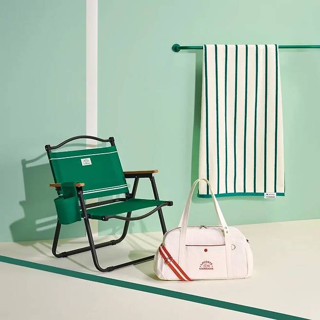 스타벅스가 여름 e-프리퀀시 증정품을 위해 라코스테와 손을 잡았다. 오는 22일부터 7월 20일까지 미션 음료 3잔을 포함한 17잔의 음료를 구매한 회원에게 증정되는 제품이다. ‘스타벅스 와이드 폴딩 체어’, ‘스타벅스 멀티플팩’, ‘스타벅스 트렌타월’ 3종으로 두 브랜드의 시그니처 컬러인 그린, 라코스테의 테니스 헤리티지를 담은 테라코타 컬러가 눈에 띈다.