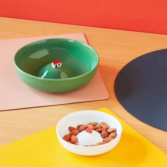 그릇 안에 나만의 작은 집을 띄워보자. MoMA 디자인 스토어에서 시리얼이나 견과류, 과일을 담기 딱 좋은 그릇을 찾았다. 그릇 가운데에 작은 언덕이 있고 그 위에 빨간 지붕 집 한 채가 자리 잡았다. 음식을 담는 공간과 언덕 사이 단차가 있어 액체를 부으면 홍수가 난 것처럼 집 주위가 찰방찰방하다. 색상은 화이트, 그린, 블루 3종. 크기도 XS, S, L 3종이다. 가격은 XS 사이즈가 약 3만 원, S 사이즈가 5만 7,000원, L 사이즈가 11만 2,000원이다. MoMA 디자인 스토어(https://tinyurl.com/2cbj4wr9)에서 구매할 수 있다.