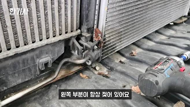 이 SM6의 또 큰 고질병 중에 하나가 에어컨이 항상 고장 나 있다는 겁니다. 그래서 지금 저희 차주 카페 회원분들 난리 났습니다. 지금 다들 맨날 글이 '에어컨이 안 돼요', '찬 바람이 안 나와요' 같은 제목이 대부분입니다. 구조적인 문제로 기계가 망가진 거죠. 그중에서 이 냉매를 식혀주는 콘덴서라는 게 있는데, 그게 거의 10대 중에 9대가 고장 납니다.