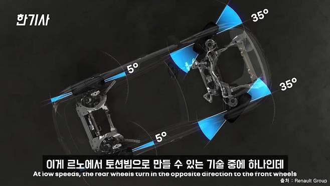 원래는 유럽 사양에는 4 컨트롤이라고 4륜 조향 시스템이 들어가요. 이게 르노에서 토션빔으로 만들 수 있는 기술 중에 하나인데, 그것 때문에 토션빔이 들어간 게 솔직히 맞긴 하거든요. 왜냐하면 공간을 넣어야 되는데 멀티링크면 구조적으로 공간이 안 나오니까 토션빔을 채용한 건데 이 4륜 조향 시스템이 한국 사양엔 없어요. 차라리 옵션으로 좀 넣어줬으면 이렇게 까이진 않았을 것 같아요.