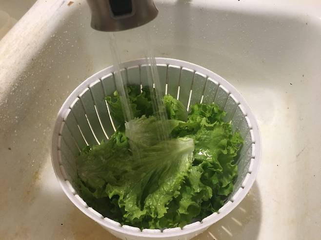 희석액에 상추를 3~5분 정도 담가두었다가 흐르는 물로 깨끗이 헹구는 것이 가장 좋다.