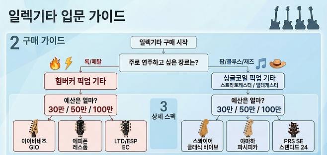 기타를 고르는 것만으로도 이미 머리가 지끈거리기 시작했다면, 당신은 정상이다. 솔직히 말하면 이게 전부가 아니다. 기타를 샀다고 바로 연주할 수 있는 것이 아니라는 것, 이 기사를 여기까지 읽은 당신은 이미 알고 있을 것이다. 기타 본체만큼이나 중요한 것이 남아 있다. 기타 소리를 세상 밖으로 꺼내줄 앰프, 그 소리를 원하는 대로 요리해줄 이펙터, 그리고 밤새 이웃 눈치 없이 연습할 수 있게 해주는 헤드폰 단자의 세계. 다음 편에서는 입문자가 가장 많이 실수하는 앰프 선택법과 함께, 30만 원대부터 100만 원대까지 기타+앰프+악세사리 예산별 완성 세트를 구체적인 제품명과 가격으로 깔끔하게 정리해드릴 예정이다. 오늘은 여기까지. 기타는 사두면 반은 된 거다. 나머지 반은 다음 편에서 채워드리겠다.