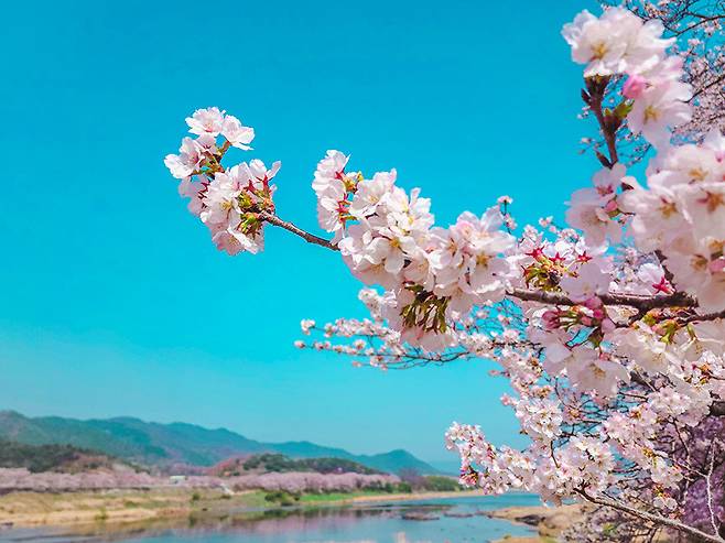 섬진강과 어우러진 아름다운 벚꽃 풍경