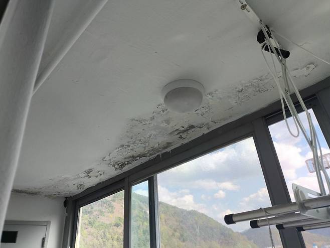 천장 페인트 같은데 계속 떨어지네요. 청소하면 더러워지고...