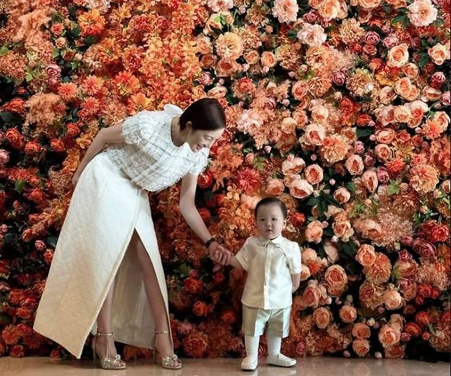 순백의 트위드 원피스를 입고 아들 우인의 손을 꼭 잡은 황보라. 그 모습은 단아함과 우아함이 함께 빛났다. 그리고 그보다 더 화제를 모은 건 바로 답례품이었다.