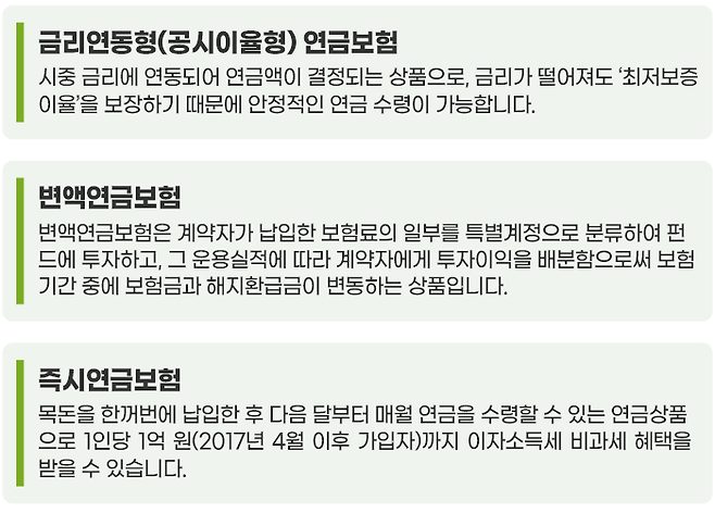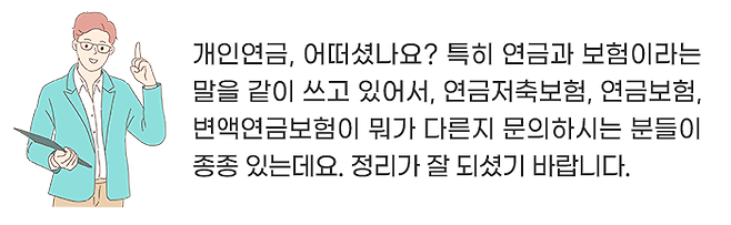 연금보험의 종류는 크게 3가지가 있는데요.