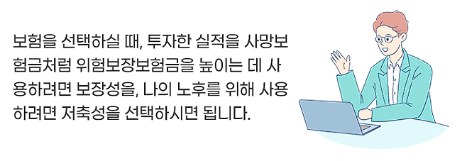그래서 가입 전에 자신의 가입 목적(보장, 저축)은 무엇인지, 감내할 수 있는 위험(Risk)은 어디까지인지를 살펴야 합니다.