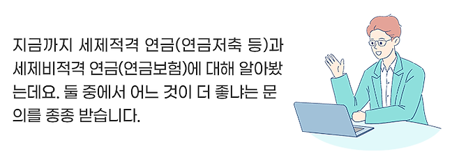 월급과 같이 고정소득이 있는 직장인의 경우 연말정산 시 세액공제 혜택을 볼 수 있는 세제적격인 연금저축을, 소득이 고정적이지 않거나 금융소득이 높아 종합과세를 내야 하는 경우라면 연금보험을 추천하는 것이 일반적인데요.