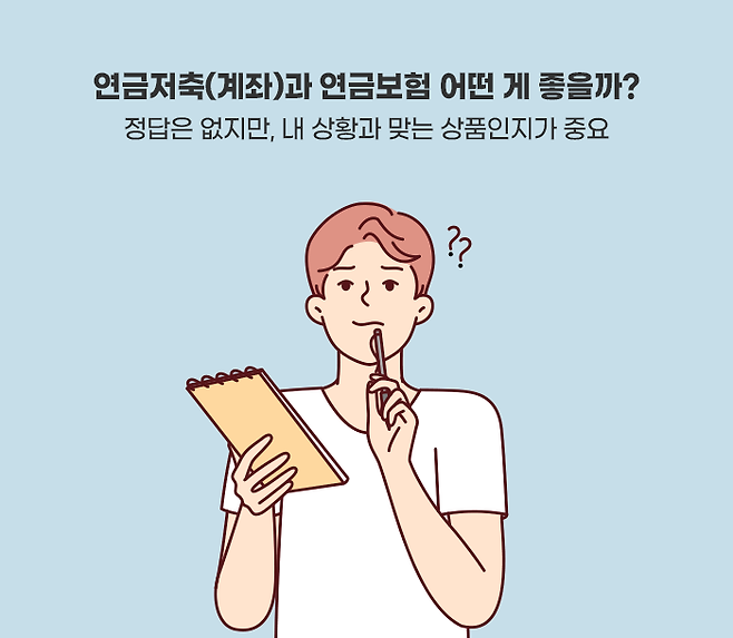 사실 연금저축과 연금보험 중 어떠한 것을 선택하는 것이 옳은지 정답은 없습니다. 좋은 상품, 나쁜 상품이 따로 있는 게 아니라 내게 맞는 상품인지가 더 중요할 것입니다.