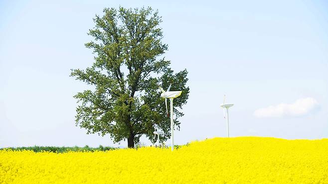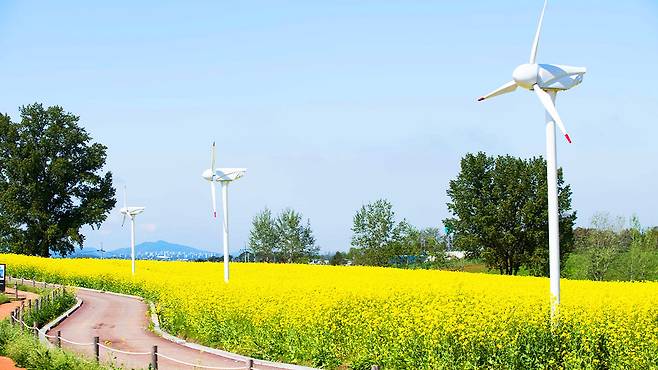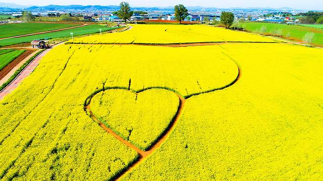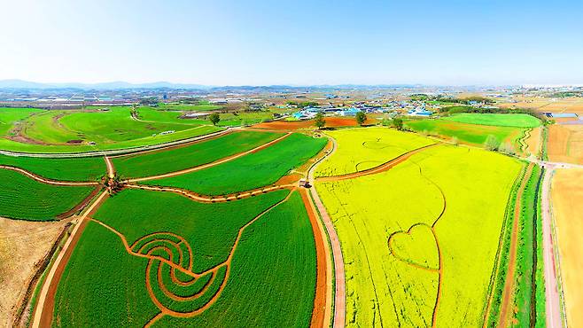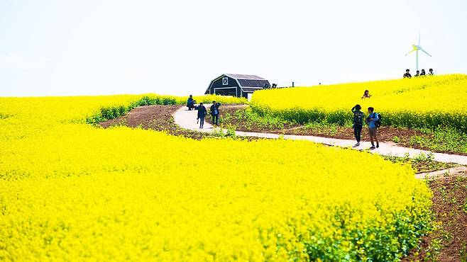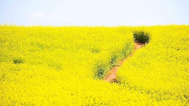 노란 유채꽃과 싱그러운 호밀밭이 교차하는 4월의 절경