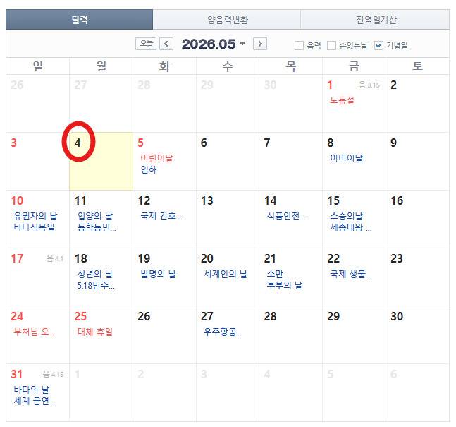 어느덧 완연한 봄기운이 느껴지는 4월 말입니다. 많은 직장인과 여행자의 시선은 이미 5월 달력에 고정되어 있죠. 특히 5월 1일 근로자의 날(금)과 5월 5일 어린이날(화) 사이에 낀 월요일에 대해 5월 4일 임시공휴일 지정 여부를 궁금해하시는 분들이 정말 많습니다.