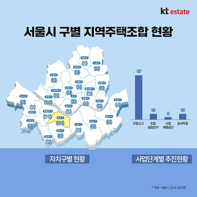특히 서울시 동작구는 유독 지주택 추진 사업장이 많은 편입니다. 서울시내 전체 사업지 118곳 중 동작구가 24곳을 차지합니다.