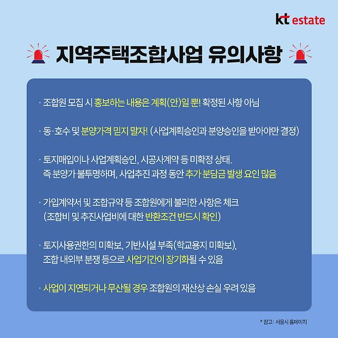 먼저 ‘사업 부지 내 토지 80% 확보’, ‘토지확보 완료’ 등 홍보 현수막이나 광고전단을 믿어선 안 됩니다. 토지 소유권인지 사용권원의 확보인지 따져보는 등 해당 자치구에 문의할 필요가 있습니다.