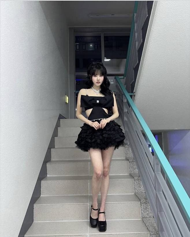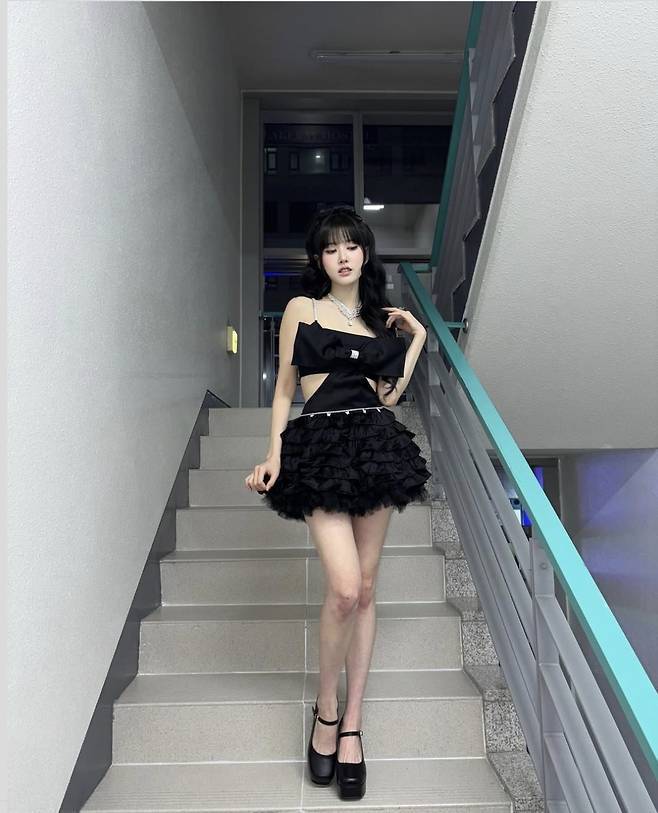 시은은 마치 동화 속 인형 같은 블랙 미니드레스로 시선을 압도했습니다.
