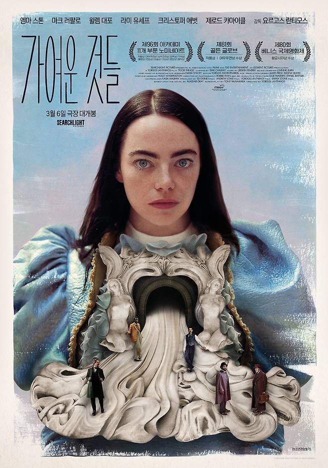 영화는, 프랑켄슈타인으로 되살아난 젊은 여성 벨라의 환상적인 진화를 그린 이야기로 에마 스톤이 베라를 맡아 파격 연기를 펼쳤다. 에마 스톤은 이 영화로 골든글로브, 크리틱스초이스어워즈에서 여우주연상을 수상하며 오는 3월10일 열리는 96회 아카데미 여우주연상 유력 후보로 떠올랐다.
