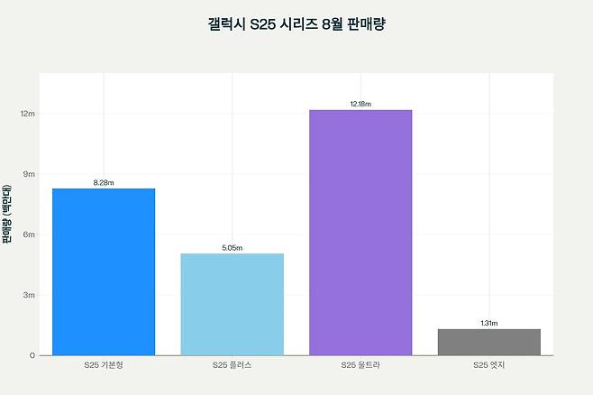 삼성전자의 8월 기준 갤럭시 S25 시리즈 판매 현황은 S25 엣지의 절망적 상황을 단적으로 보여준다. S25 울트라가 1,218만 대, S25 기본형이 828만 대, S25 플러스가 505만 대를 기록한 반면, S25 엣지는 131만 대에 그쳤다. S25 울트라 대비 약 11% 수준의 판매량으로, 이는 보조 모델이라는 낙인을 벗을 수 없는 처참한 결과였다.