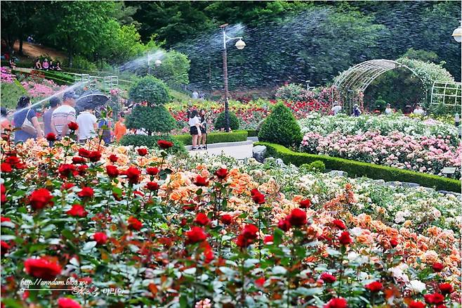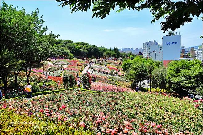 도당공원 백만송이장미원은 약 2만㎡ 부지에 151종, 수천만 송이의 장미가 조성된 명소다. 개화 절정기는 매년 5월 말부터 6월 초 사이로, 형형색색 장미꽃이 만발해 이국적인 분위기를 자아낸다. 걷다 보면 은은한 장미향이 따라붙고, 곳곳에 설치된 포토존은 인생샷을 남기기에 제격이다.