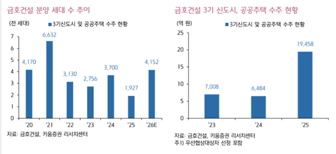금호건설이 2024년 대규모 적자 이후 빠르게 개선세를 보일 수 있었던 배경은 관급 공사 수주 물량 확대에 따른 수혜 때문으로 분석된다. 대형사들 위주로 주택사업 부문에서 민간의 고급화 사업 수주에 집중하는 동안 공공주택 쪽으로 눈길을 돌려 실리를 추구해 온 결과다.