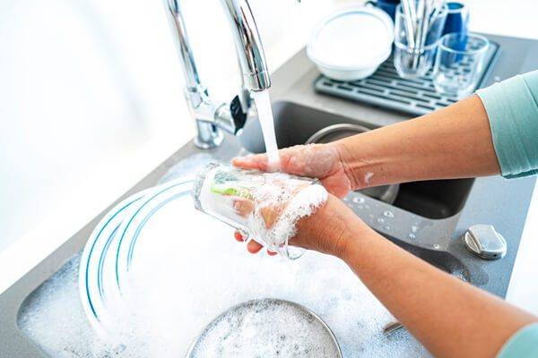 손은 신체 부위 중 가장 사용 빈도가 높은 부위입니다. 설거지 거리가 적다고 해서 맨손으로 후다닥 설거지를 한다면? 이는 손 피부에 최악이며 자글자글한 손등 주름이 생기기 쉽습니다. 세제나 물은 피부를 보호하는 천연 오일막을 씻어내기 때문에 건조함이 갈수록 심해질 수 있어 주방일을 할 땐 꼭 고무장갑을 착용하도록 하고 이후 반드시 손을 깨끗하게 씻어줍니다.