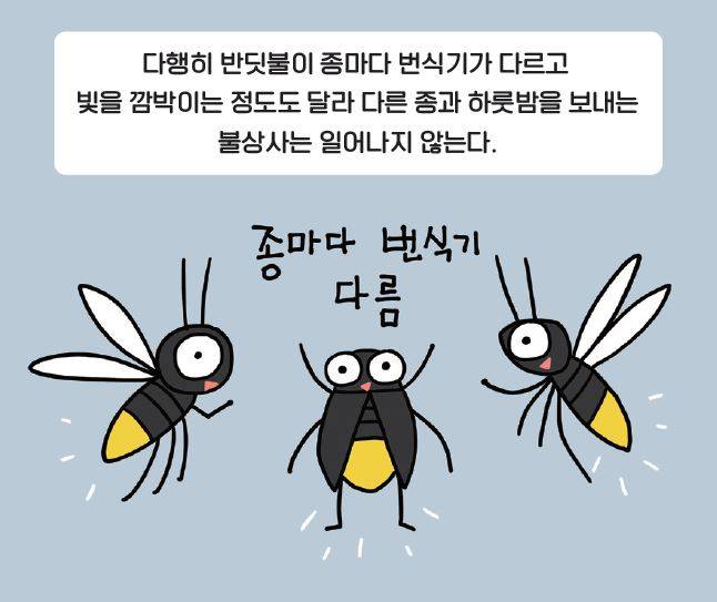 신기하게도 반딧불이가 날아다니는 속도는 손으로 잡을 수 있을 만큼 느리다. 반딧불이의 빛, 그 반짝임엔 생존과 번식을 향한 처절한 몸부림이 담겨 있다. 그래서 더 아름답게 느껴지는 건 아닐까?