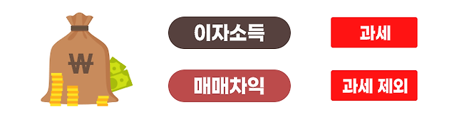 채권의 이자소득에는 15.4%(지방소득세 포함)의 세금이 과세됩니다. 하지만, 채권의 매매차익에는 개인이 직접 투자할 경우 세금이 과세되지 않기 때문에 절세 효과를 볼 수 있습니다.