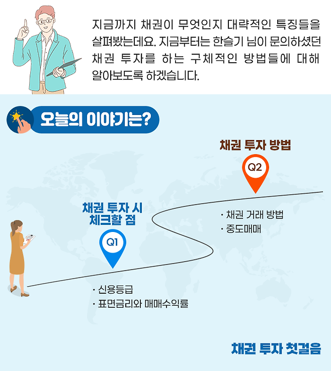 적지 않은 금리에 안정성까지 큰 채권은 그동안 자산가나 전문 투자자들의 전유물로 생각되었고, 개인 투자자들에게는 낯설고 어렵게 느껴지기도 했습니다.