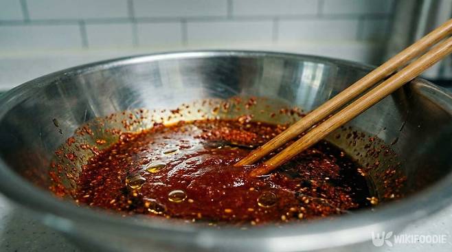 2. 양념장은 고추장만 쓰면 텁텁하다. 고추장 1.5큰술, 고춧가루 1큰술, 간장 1큰술, 매실청 1큰술, 식초 1/2큰술, 다진 마늘 1작은술, 참기름 1큰술을 따로 섞어 만든다.